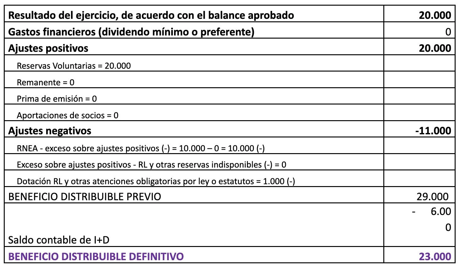 10% x 20.000 = 2.000 (Artículo 274.1 TRLSC); RL = 1.000**