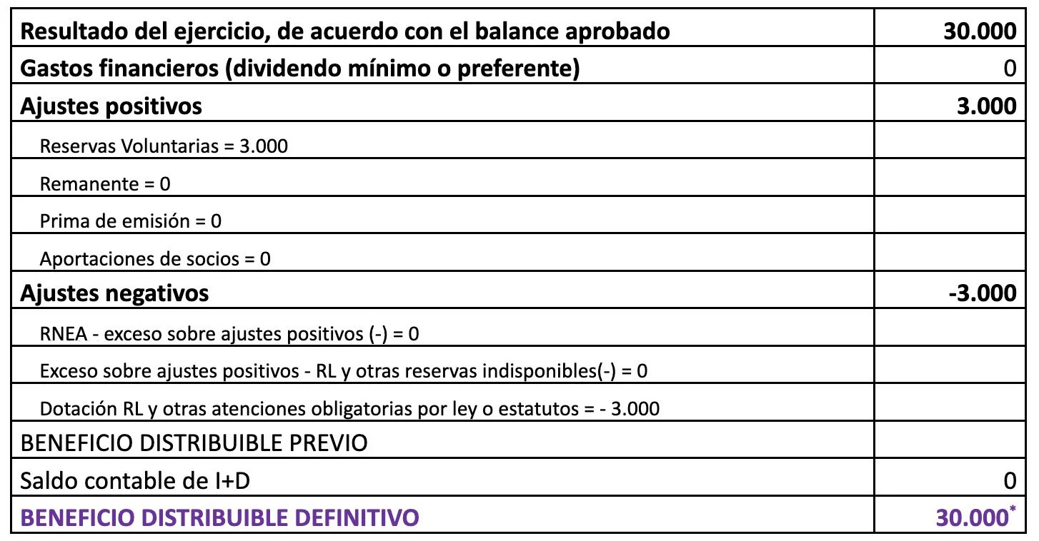Dividendo máximo con cargo a resultados del ejercicio = 30.000 – 3.000 = 27.000
