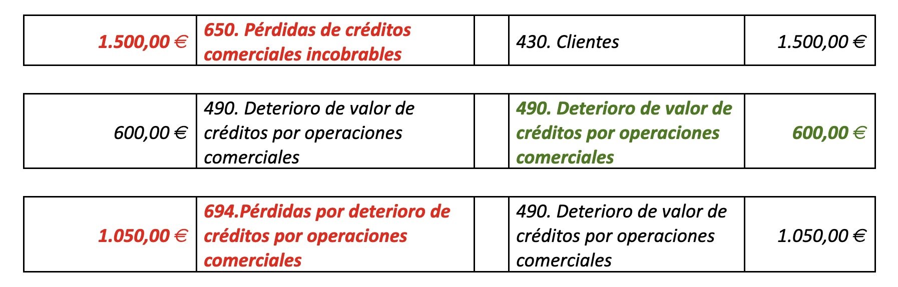 En relación con la partida (650) Pérdidas de créditos comerciales incobrables